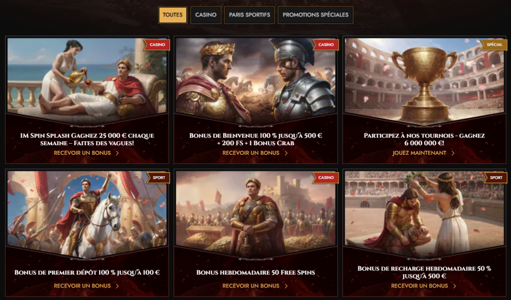 Legiano Casino propose une gamme complète de bonus adaptés aussi bien aux nouveaux joueurs qu’aux utilisateurs réguliers. Le système de promotions est divisé en deux catégories principales : les bonus dédiés au casino en ligne et ceux orientés vers les paris sportifs. Les joueurs peuvent ainsi choisir les offres correspondant à leur style de jeu, qu’il s’agisse de machines à sous, de jeux Live, de paris pré-match ou en direct.